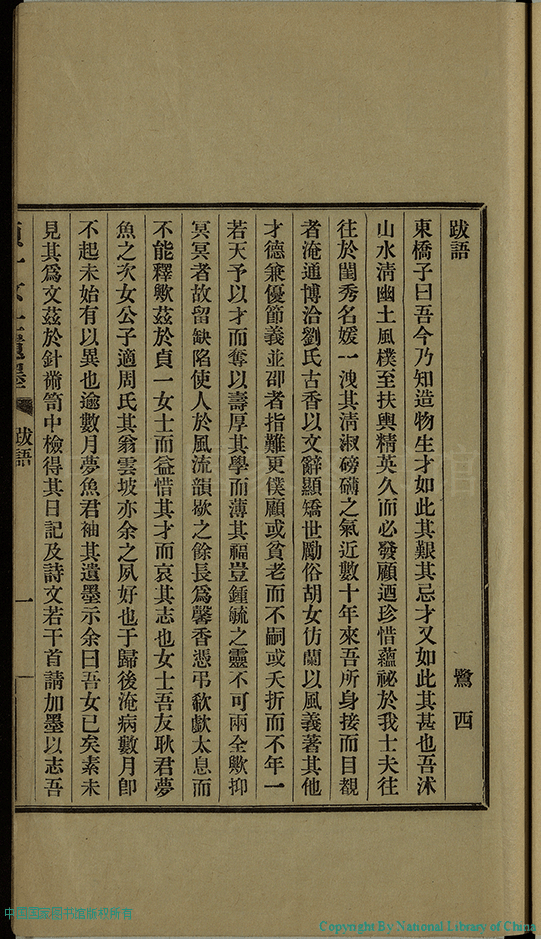 | (PRINT FRIENDLY VERSION) 貞一女士遺墨:一卷(清耿淑田撰) 。民國十一年(1922)國光書局鉛印本 ![]() 頁碼 : 跋語.1b | 点 击 放 大 | 貞一女士遺墨:一卷(清耿淑田撰) 。民國十一年(1922)國光書局鉛印本![]() 頁碼 : 跋語.1a | 点 击 放 大 | 返回 |