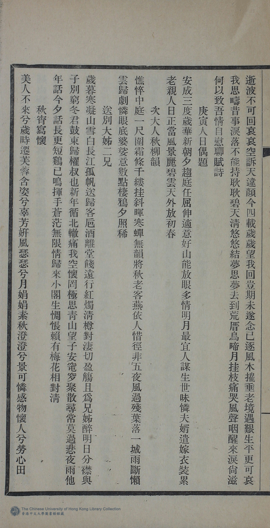 | 原書: 滄海歸來集:詩十一卷,詞一卷,續集一卷,餘卷二卷,消愁吟二卷,文一卷(清姚倚雲撰) |