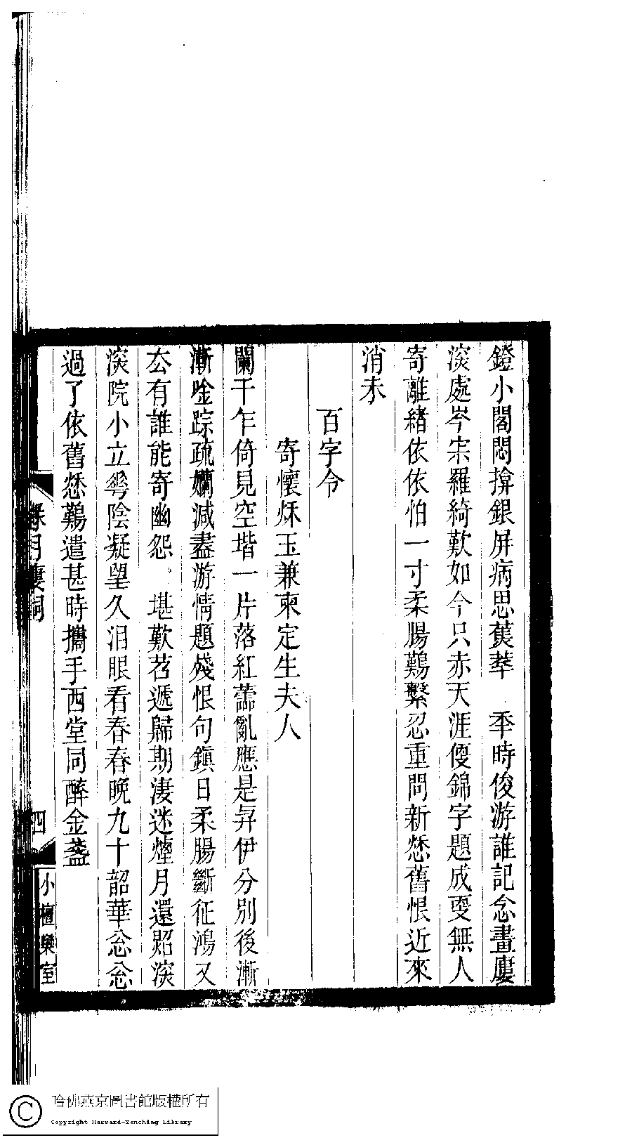 | 原書: 小檀欒室彙刻閨秀詞﹕十集一百種一百卷(清徐乃昌輯): 綠月樓詞﹕一卷 |