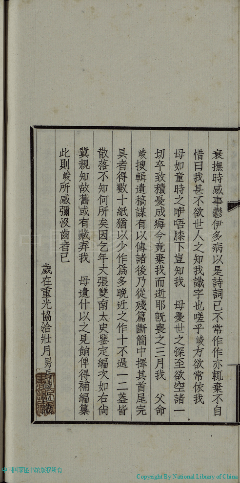 | (PRINT FRIENDLY VERSION) 素心閣遺稿:三卷(清鄭道馥撰)。民國21年(1932)文嵐簃古宋印書局鉛印本 ![]() 頁碼 : 跋.1b | 点 击 放 大 | 素心閣遺稿:三卷(清鄭道馥撰)。民國21年(1932)文嵐簃古宋印書局鉛印本 ![]() 頁碼 : 跋.1a | 点 击 放 大 | 返回 |