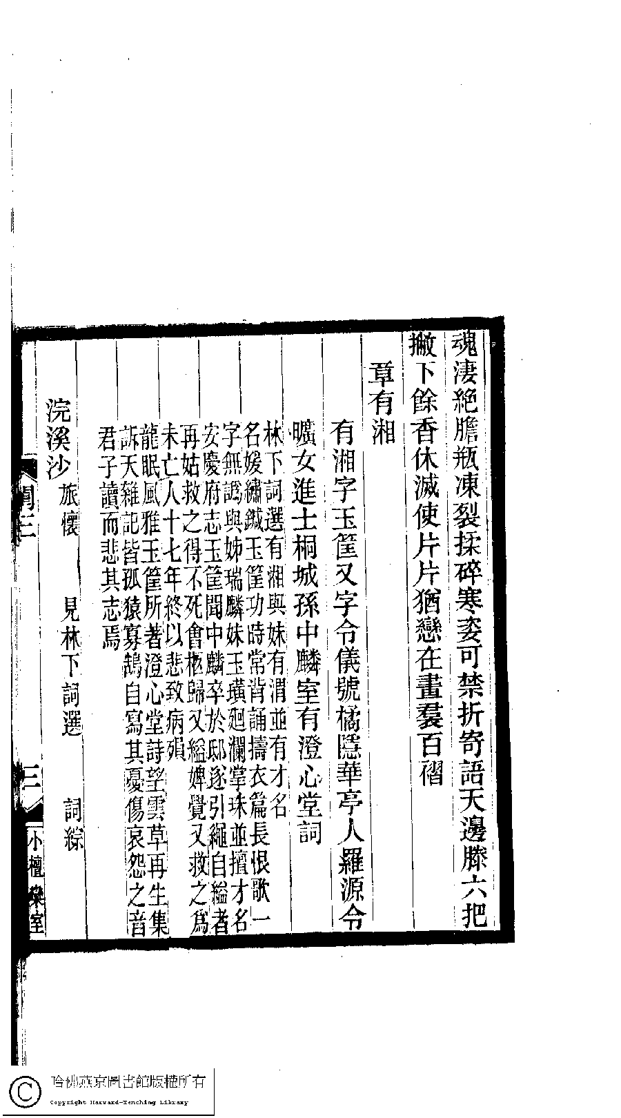 | (PRINT FRIENDLY VERSION) 閨秀詞鈔﹕十六卷(清徐乃昌輯)。清宣統元年(1909)小檀欒室刻本。 ![]() 頁碼 : 3.3b | 点 击 放 大 | 閨秀詞鈔﹕十六卷(清徐乃昌輯)。清宣統元年(1909)小檀欒室刻本。![]() 頁碼 : 3.3a | 点 击 放 大 | 返回 |