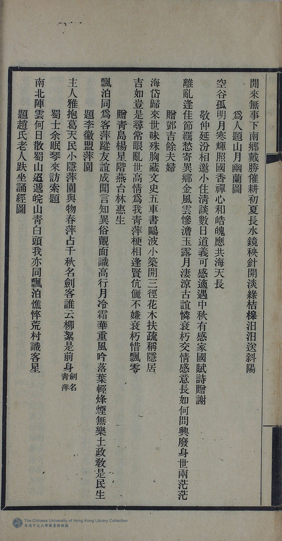 | (PRINT FRIENDLY VERSION) 滄海歸來集:詩十一卷,詞一卷,續集一卷,餘卷二卷,消愁吟二卷,文一卷(清姚倚雲撰)。民國三十三年(1944)或其後排印本 ![]() 頁碼 : 消愁吟卷上.50b | 点 击 放 大 | 返回 |