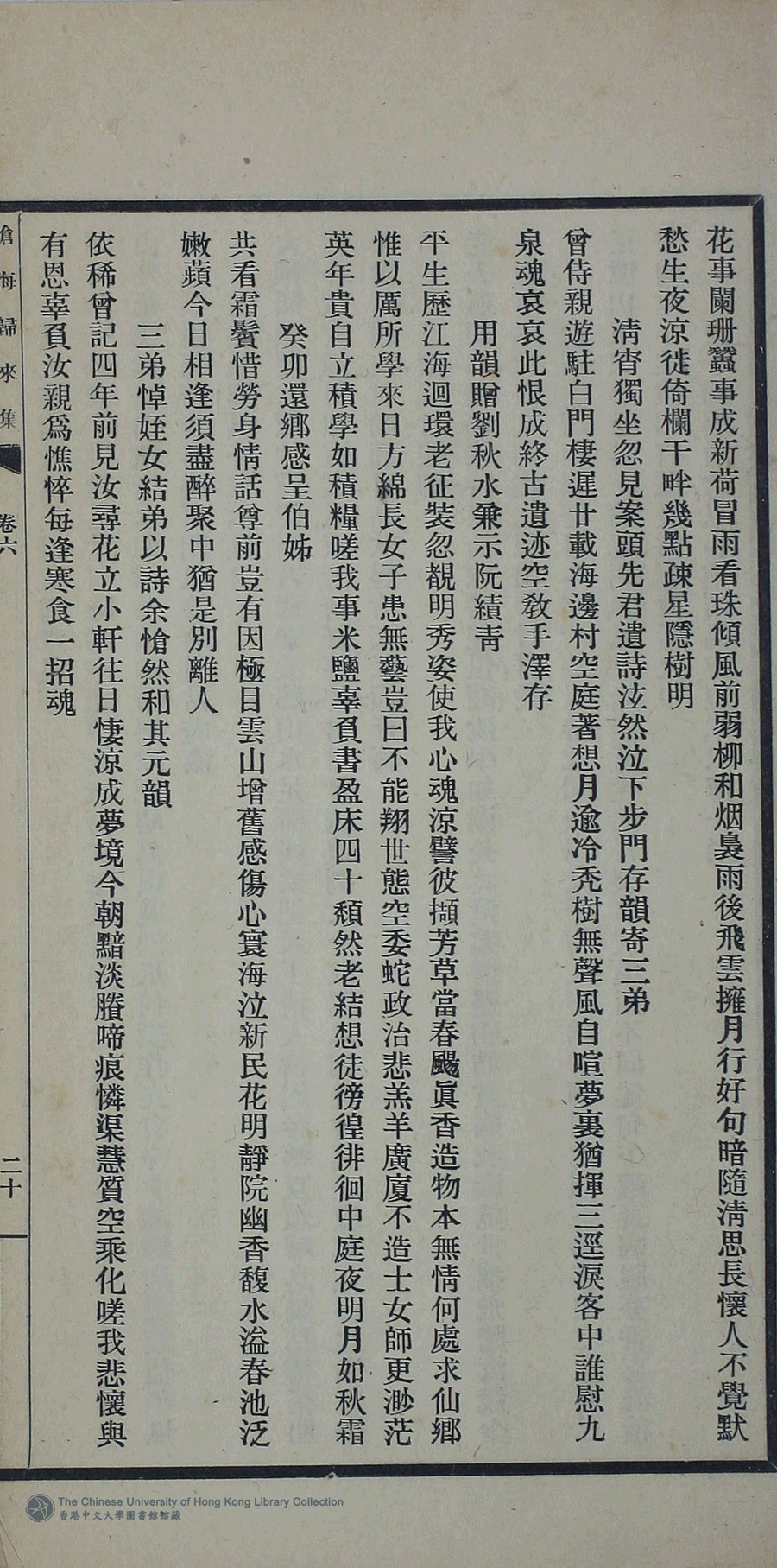 | 原書: 滄海歸來集:詩十一卷,詞一卷,續集一卷,餘卷二卷,消愁吟二卷,文一卷(清姚倚雲撰) |