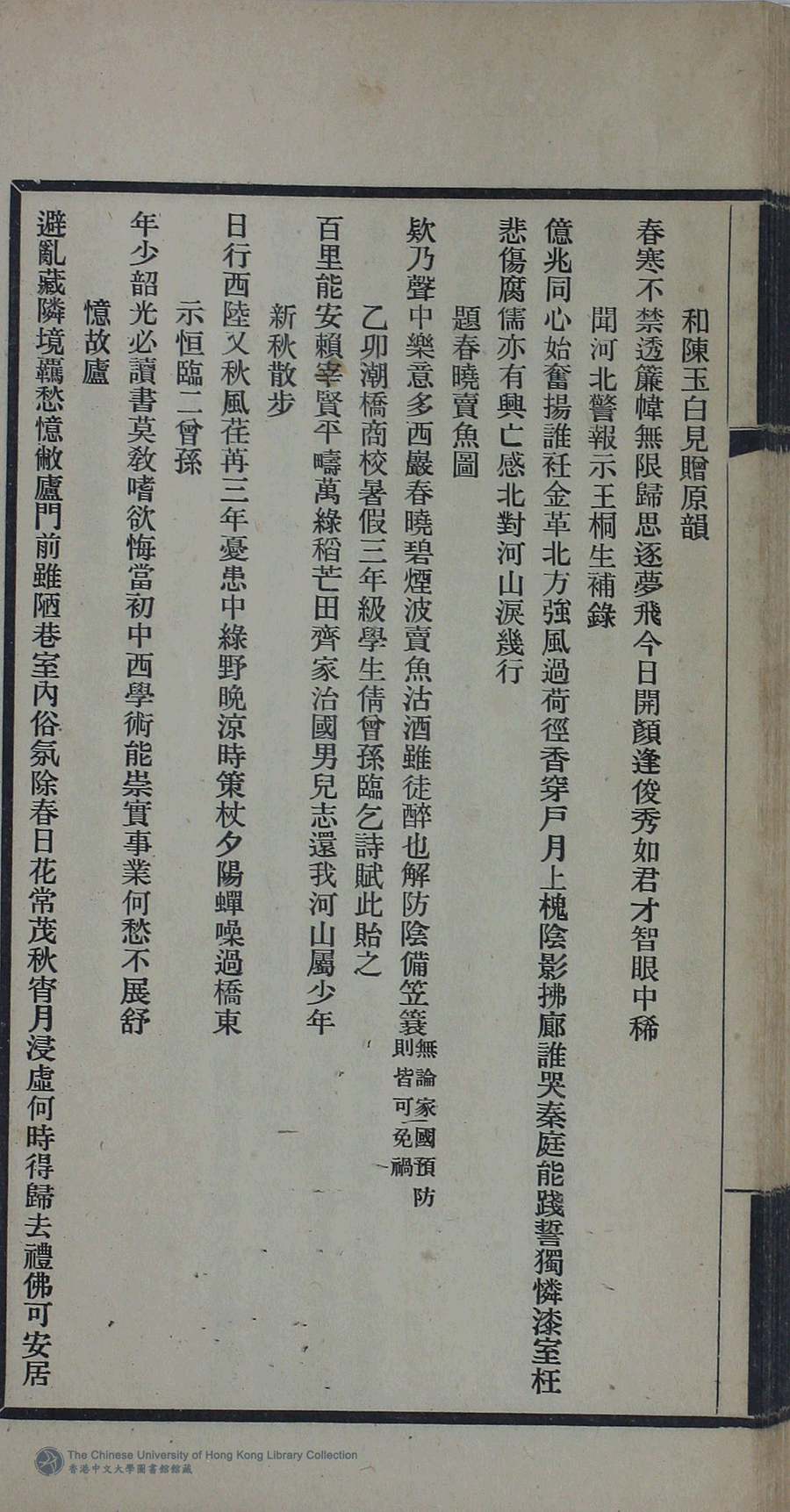 | (PRINT FRIENDLY VERSION) 滄海歸來集:詩十一卷,詞一卷,續集一卷,餘卷二卷,消愁吟二卷,文一卷(清姚倚雲撰)。民國三十三年(1944)或其後排印本 ![]() 頁碼 : 消愁吟卷上. 51b | 点 击 放 大 | 返回 |