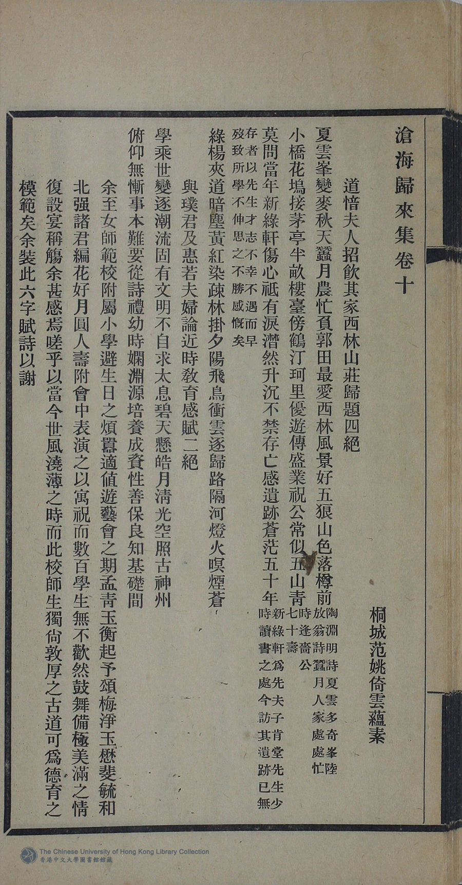 | 原書: 滄海歸來集:詩十一卷,詞一卷,續集一卷,餘卷二卷,消愁吟二卷,文一卷(清姚倚雲撰) |