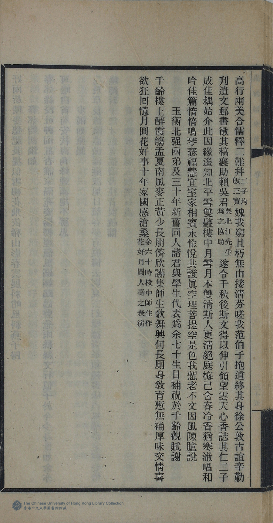 詩詞 [玉衡北强兩弟及三十年新舊同人諸君與學生代表為余七十生日補祝於千齡觀賦謝]