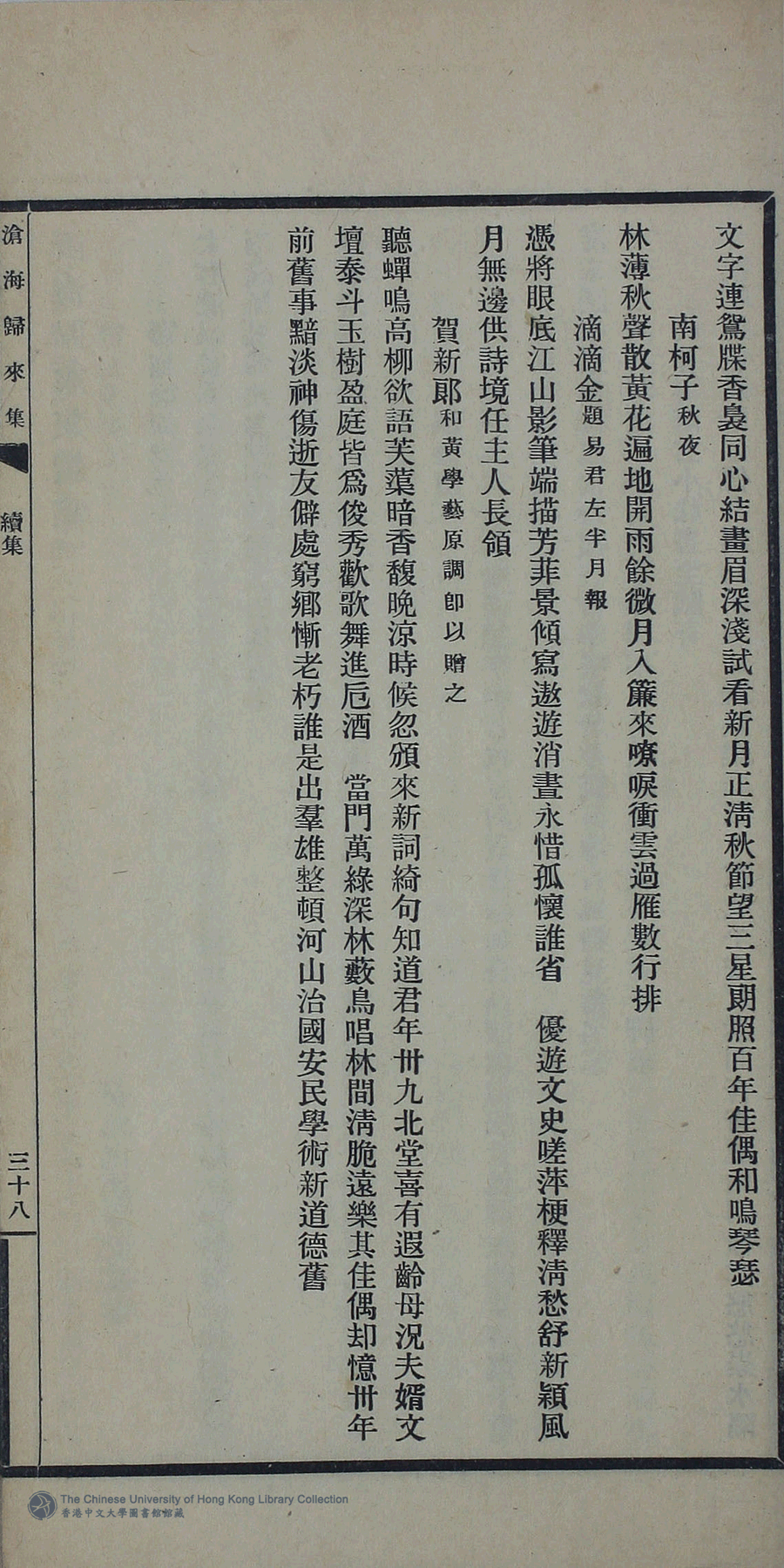 | 原書: 滄海歸來集:詩十一卷,詞一卷,續集一卷,餘卷二卷,消愁吟二卷,文一卷(清姚倚雲撰) |