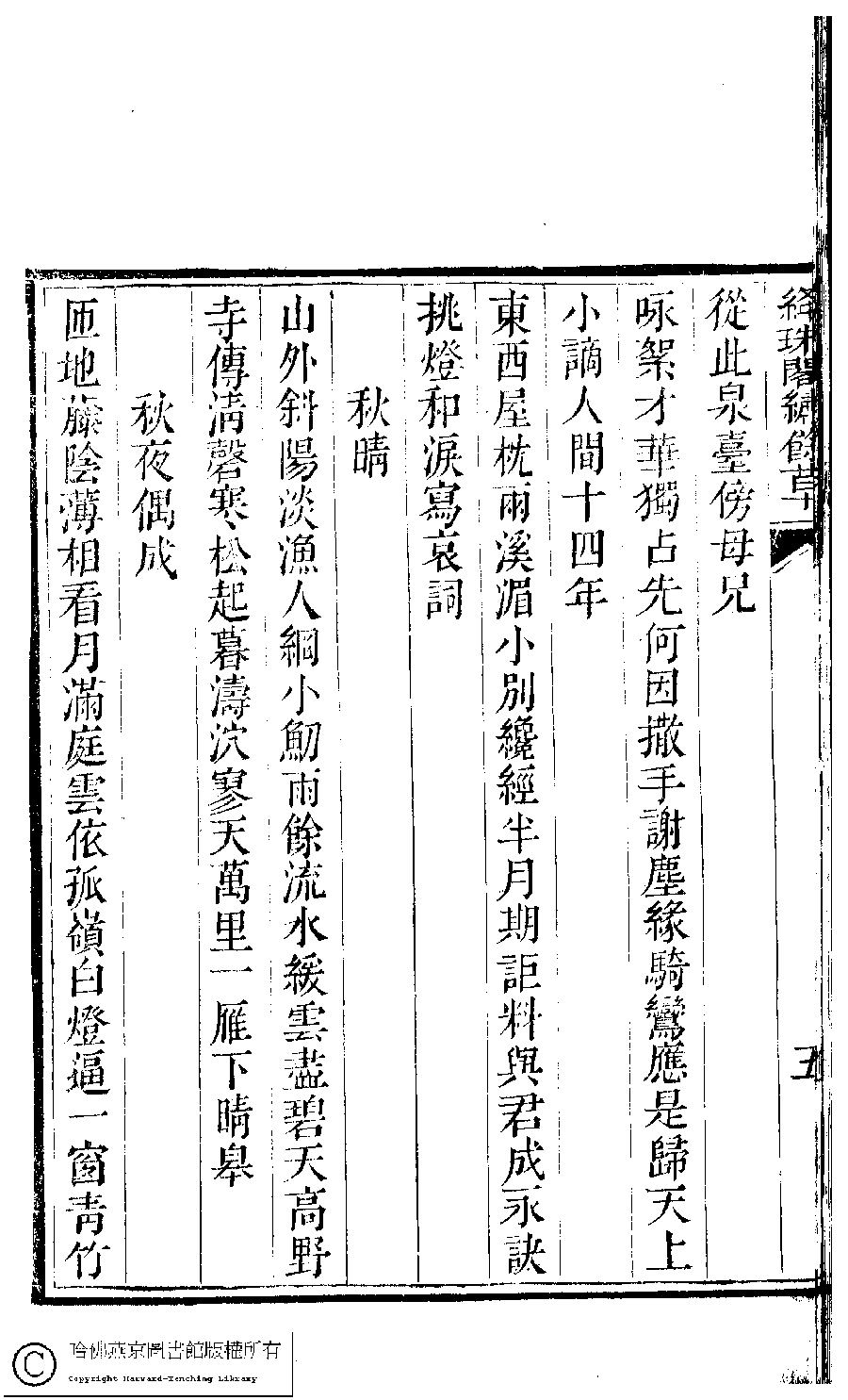 | 原書: 絳珠閣繡餘草﹕一卷﹔詩餘﹕一卷(清吳秀珠撰) |