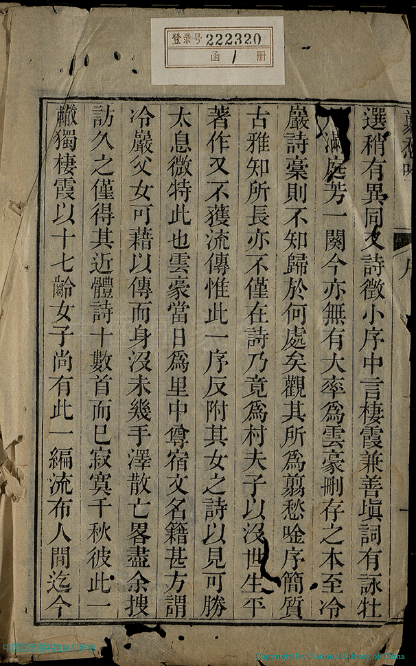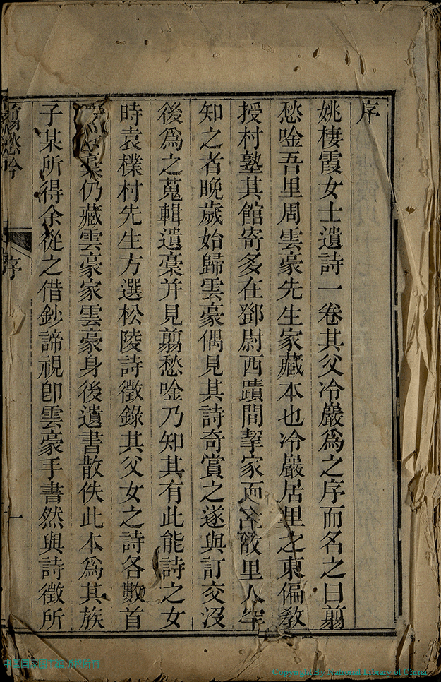 | (PRINT FRIENDLY VERSION) 翦愁吟: 一卷(清姚棲霞撰)。清刻本 ![]() 頁碼 : 序.2b | 点 击 放 大 | 翦愁吟: 一卷(清姚棲霞撰)。清刻本![]() 頁碼 : 序.2a | 点 击 放 大 | 翦愁吟: 一卷(清姚棲霞撰)。清刻本![]() 頁碼 : 序.1b | 点 击 放 大 | 翦愁吟: 一卷(清姚棲霞撰)。清刻本![]() 頁碼 : 序.1a | 点 击 放 大 | 返回 |