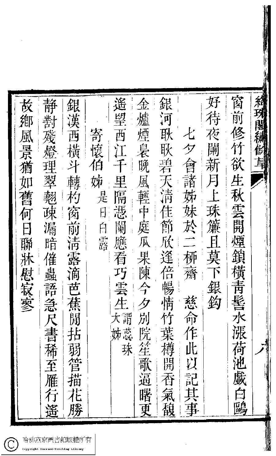 詩詞 [七夕會諸姊妹於二柳齋慈命作此以記其事]