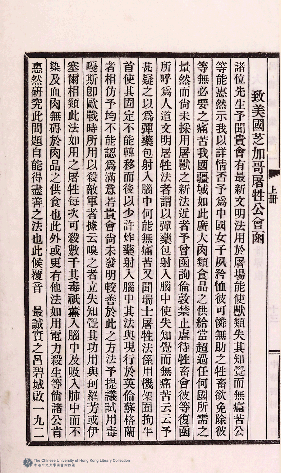 詩詞 [致美國芝加哥屠牲工會函]