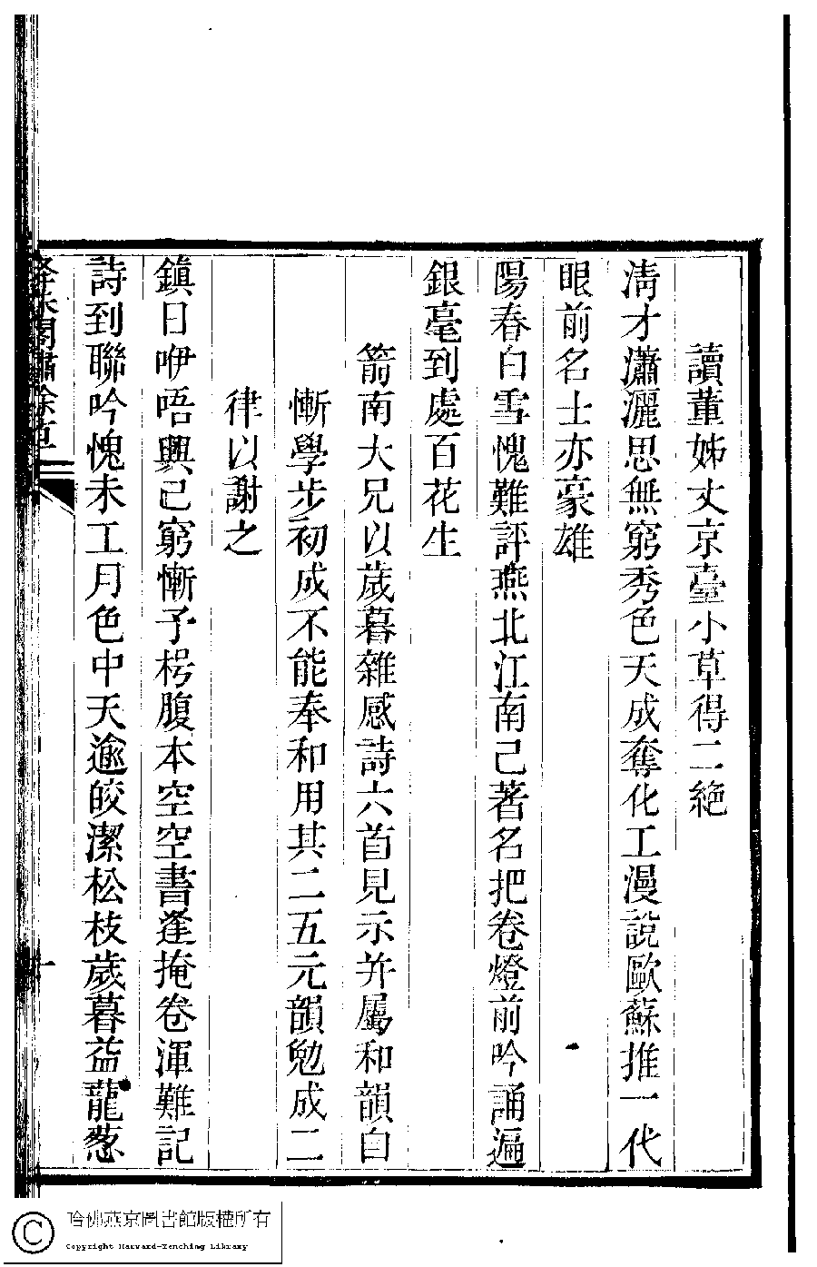| (PRINT FRIENDLY VERSION) 絳珠閣繡餘草﹕一卷﹔詩餘﹕一卷(清吳秀珠撰)。清道光八年(1828)刻本。 ![]() 頁碼 : 10a | 点 击 放 大 | 返回 |