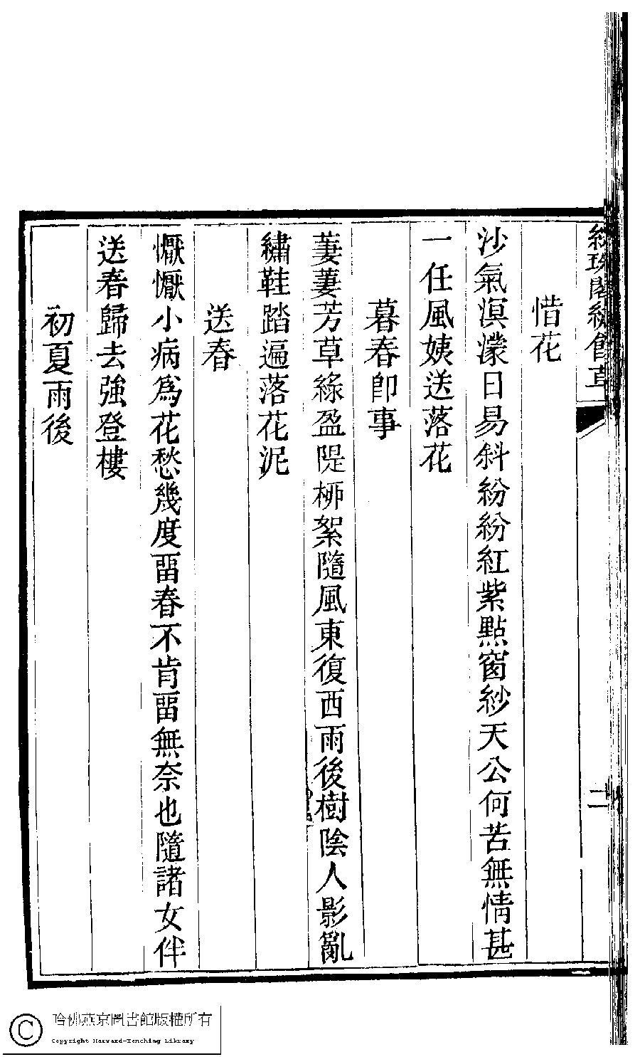 | 原書: 絳珠閣繡餘草﹕一卷﹔詩餘﹕一卷(清吳秀珠撰) |