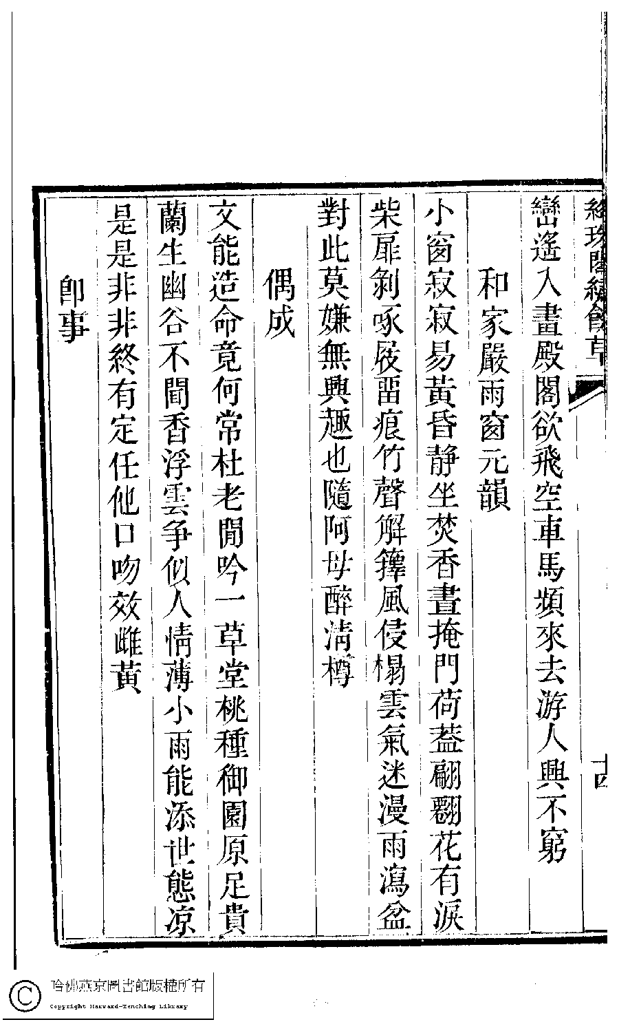 | 原書: 絳珠閣繡餘草﹕一卷﹔詩餘﹕一卷(清吳秀珠撰) |