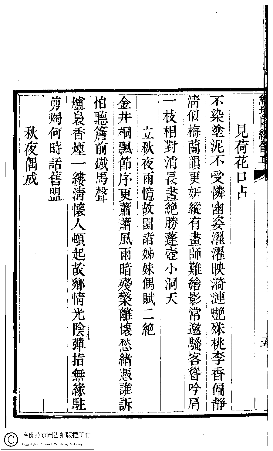| 原書: 絳珠閣繡餘草﹕一卷﹔詩餘﹕一卷(清吳秀珠撰) |