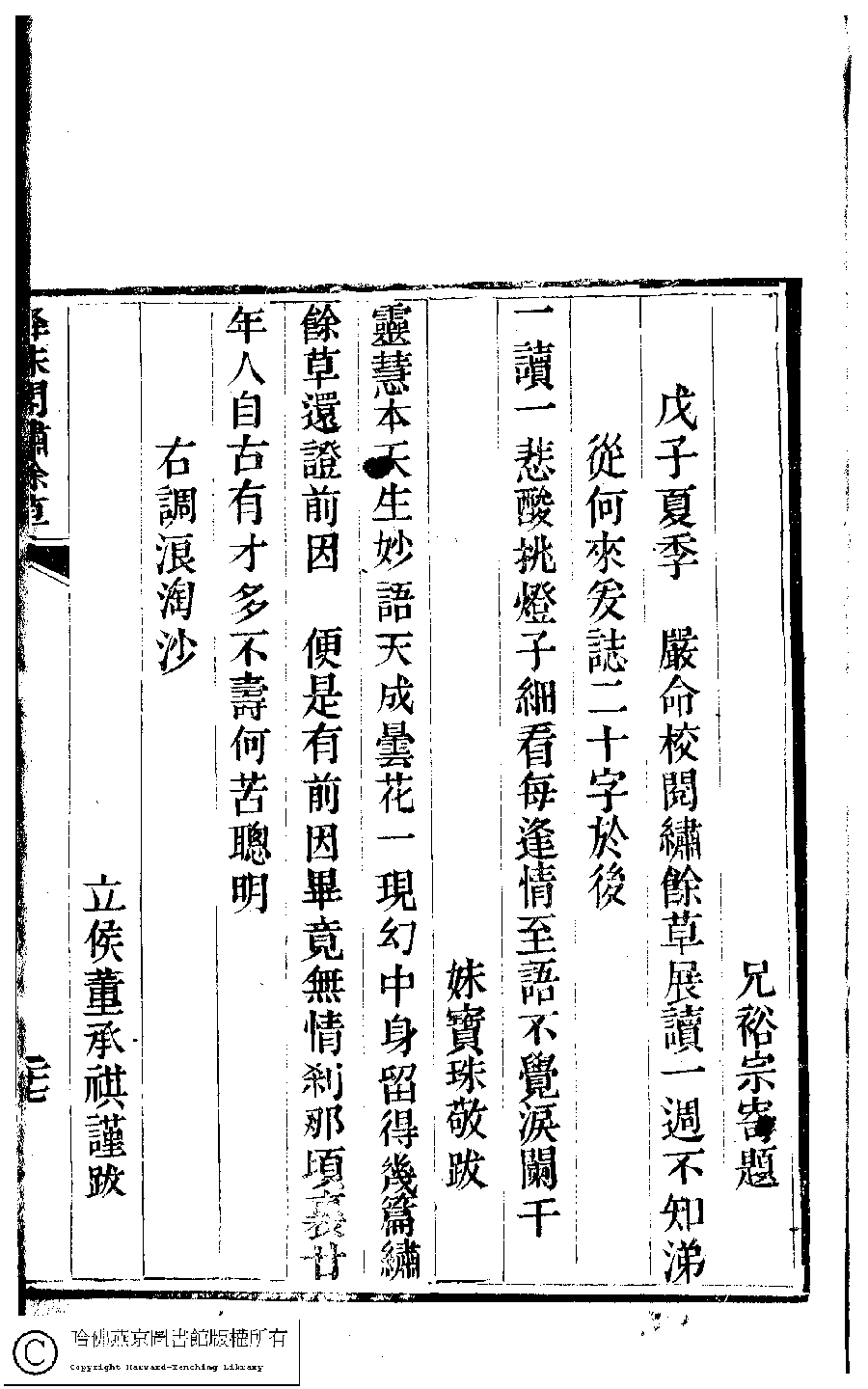 詩詞 [戊子夏季嚴命校閱繡餘草展讀一週不知涕從何來爰誌二十字於後]