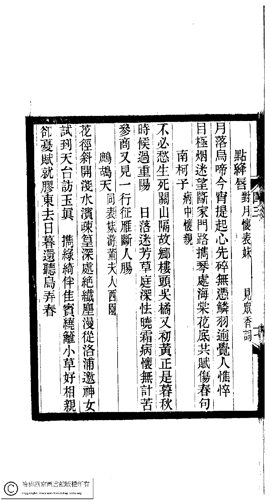 | (PRINT FRIENDLY VERSION) 閨秀詞鈔﹕十六卷(清徐乃昌輯)。清宣統元年(1909)小檀欒室刻本。 ![]() 頁碼 : 3.17b | 点 击 放 大 | 返回 |