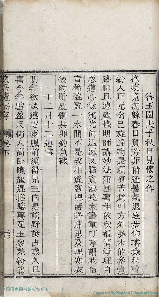 詩詞 [答玉園夫子秋日見懷之作]