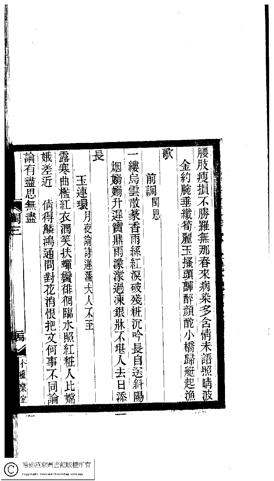 | (PRINT FRIENDLY VERSION) 閨秀詞鈔﹕十六卷(清徐乃昌輯)。清宣統元年(1909)小檀欒室刻本。 ![]() 頁碼 : 3.24a | 点 击 放 大 | 返回 |