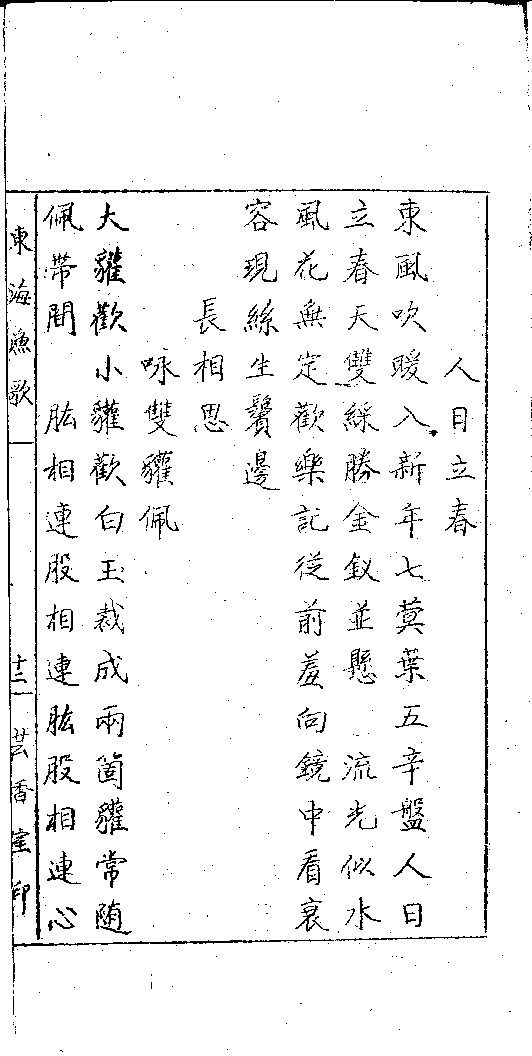 | 原書: 東海漁歌四卷, 補遺:一卷(清顧太清撰) |
