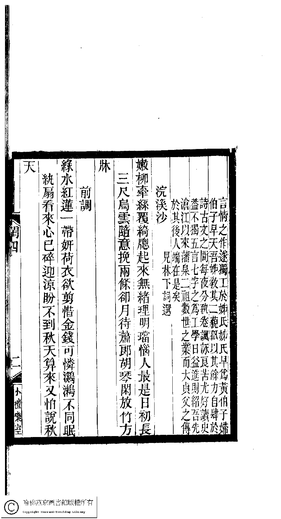 | (PRINT FRIENDLY VERSION) 閨秀詞鈔﹕十六卷(清徐乃昌輯)。清宣統元年(1909)小檀欒室刻本。 ![]() 頁碼 : 4.2a | 点 击 放 大 | 返回 |