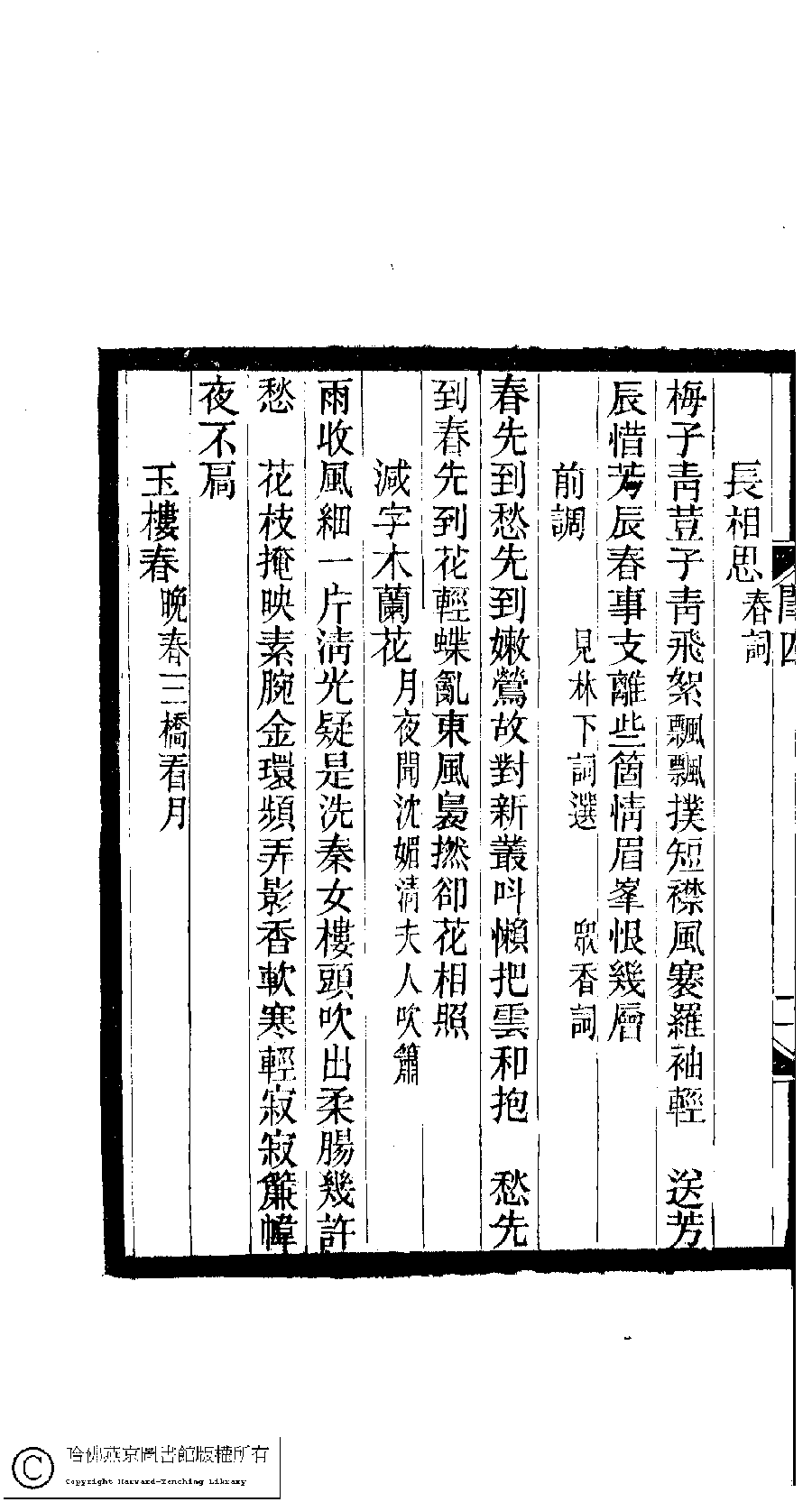 | (PRINT FRIENDLY VERSION) 閨秀詞鈔﹕十六卷(清徐乃昌輯)。清宣統元年(1909)小檀欒室刻本。 ![]() 頁碼 : 4.2b | 点 击 放 大 | 返回 |