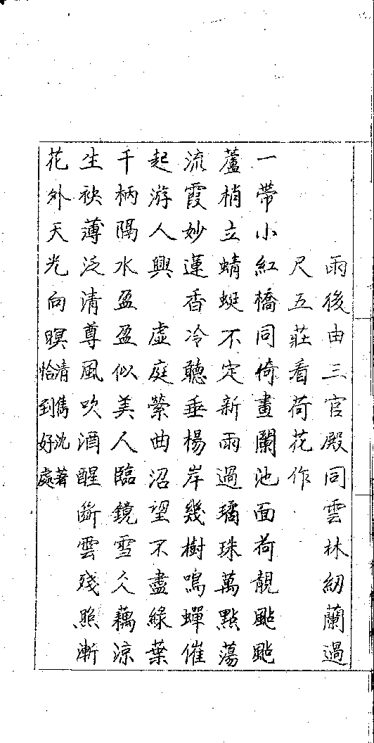 詩詞 [碧芙蓉 ﹕雨後由三官殿同雲林紉蘭過尺五莊看荷花作]