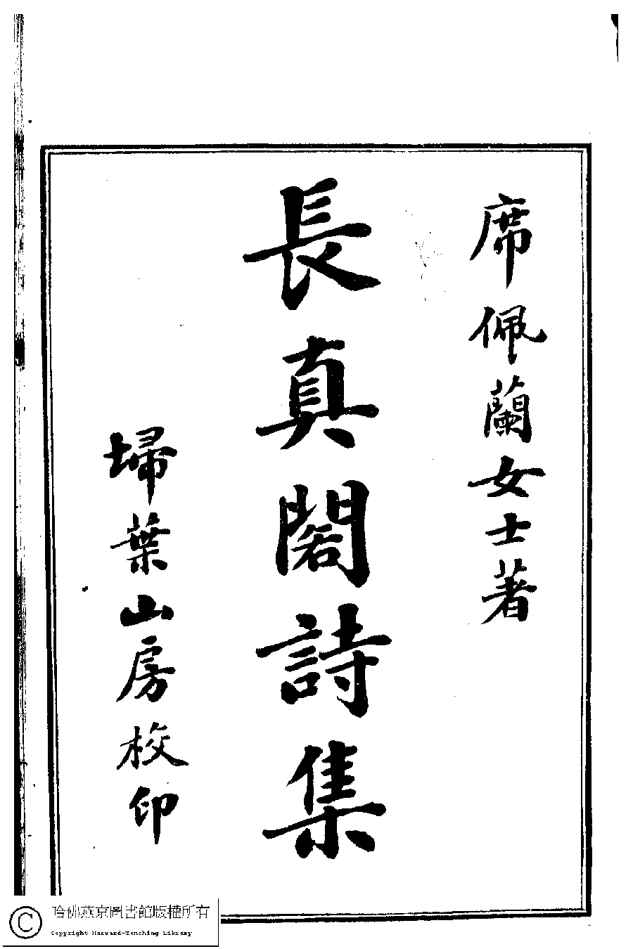 長真閣集﹕七卷﹐詩餘﹕一卷(清席佩蘭撰)。民國九年(1920)掃葉山房石印本。