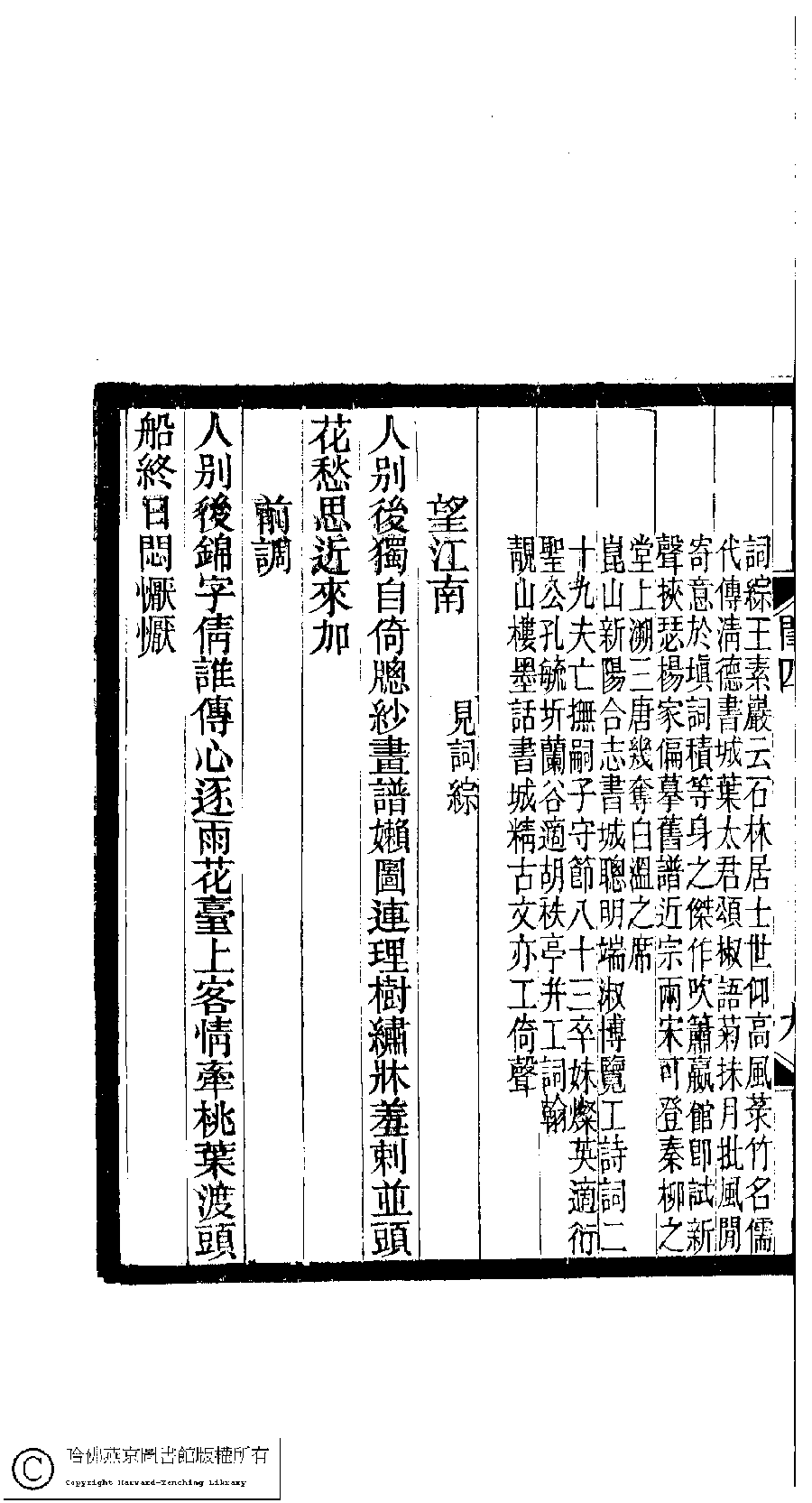 | (PRINT FRIENDLY VERSION) 閨秀詞鈔﹕十六卷(清徐乃昌輯)。清宣統元年(1909)小檀欒室刻本。 ![]() 頁碼 : 4.9b | 点 击 放 大 | 返回 |