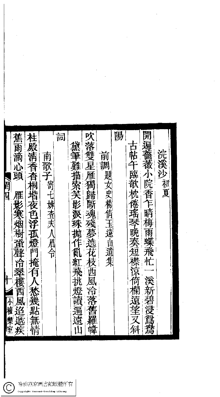 | (PRINT FRIENDLY VERSION) 閨秀詞鈔﹕十六卷(清徐乃昌輯)。清宣統元年(1909)小檀欒室刻本。 ![]() 頁碼 : 4.10a | 点 击 放 大 | 返回 |