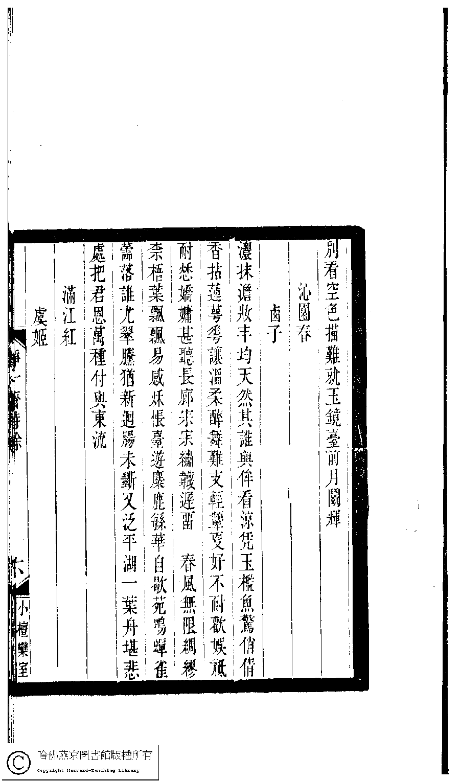 | 原書: 小檀欒室彙刻閨秀詞﹕十集一百種一百卷(清徐乃昌輯): 靜一齋詩餘﹕一卷 |