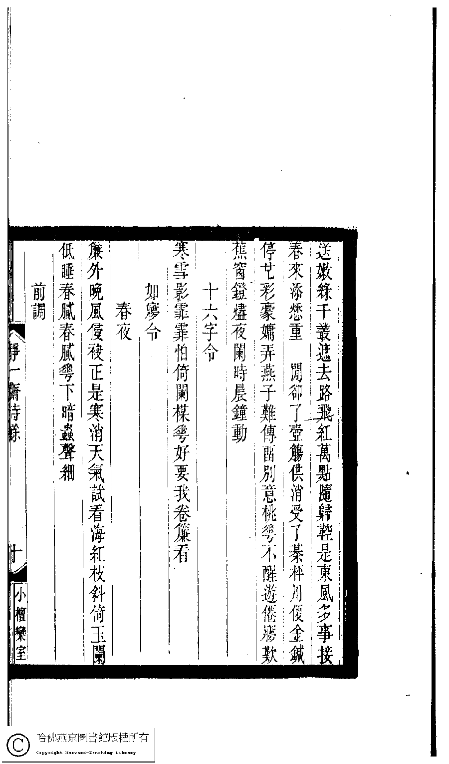 | 原書: 小檀欒室彙刻閨秀詞﹕十集一百種一百卷(清徐乃昌輯): 靜一齋詩餘﹕一卷 |