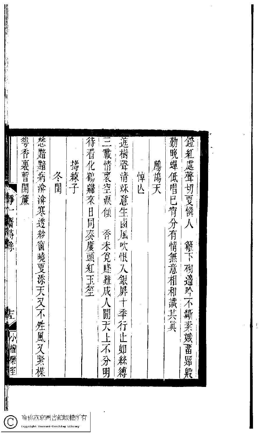 | 原書: 小檀欒室彙刻閨秀詞﹕十集一百種一百卷(清徐乃昌輯): 靜一齋詩餘﹕一卷 |