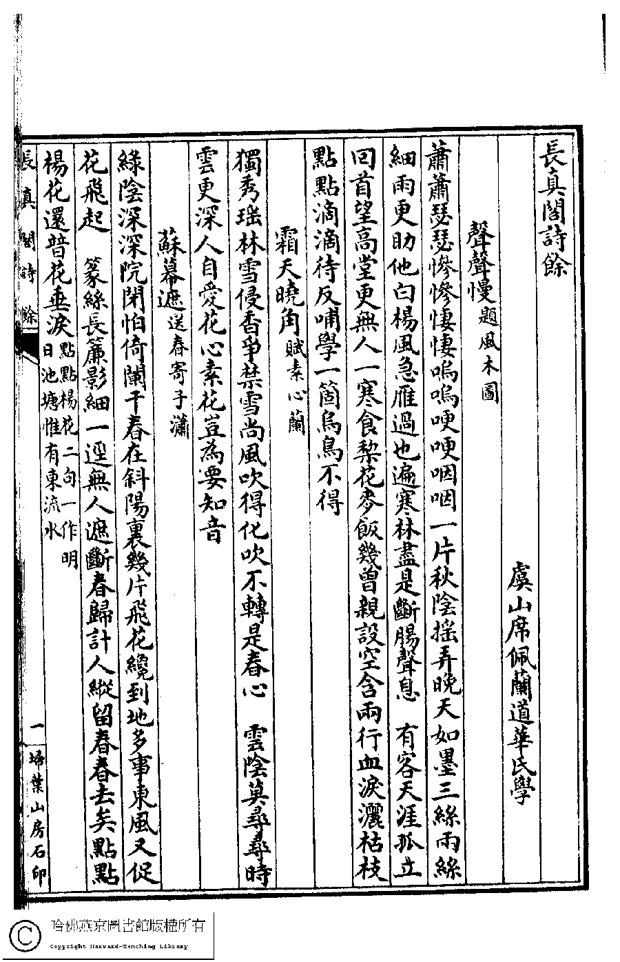 | 原書: 長真閣集﹕七卷﹐詩餘﹕一卷(清席佩蘭撰) |