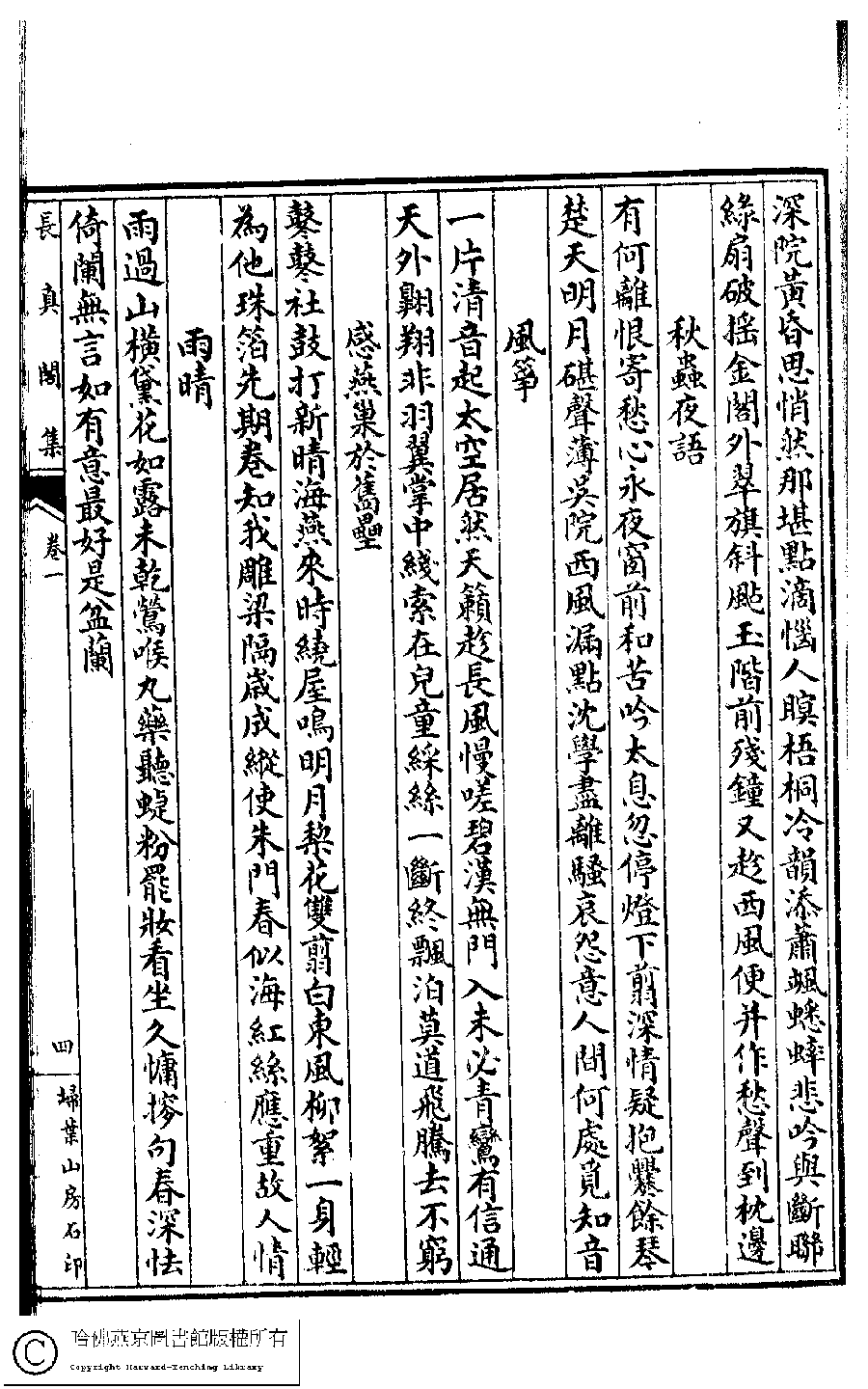 | 原書: 長真閣集﹕七卷﹐詩餘﹕一卷(清席佩蘭撰) |