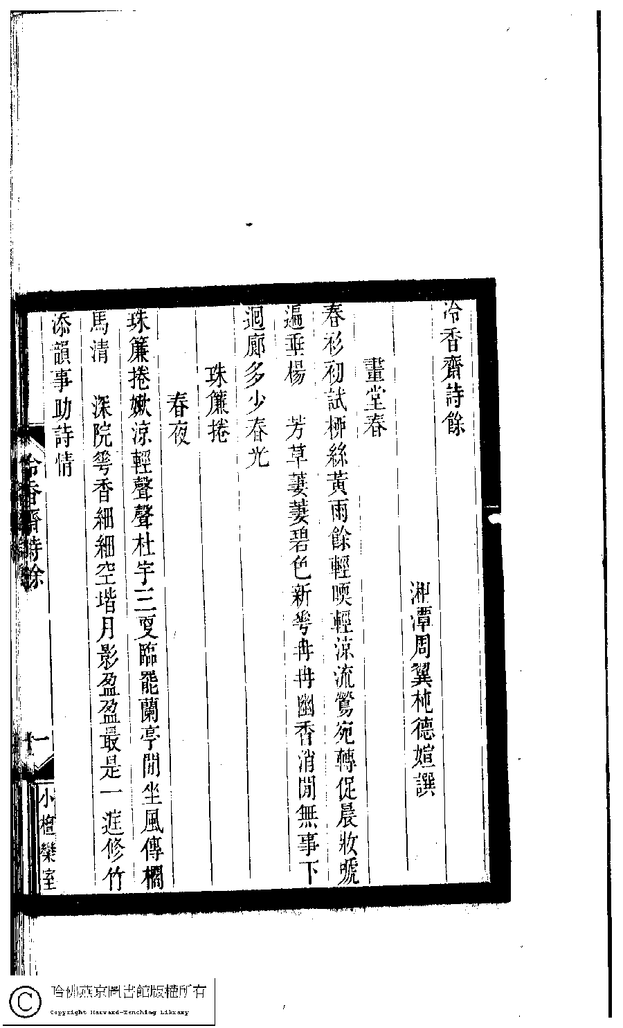 | 原書: 小檀欒室彙刻閨秀詞﹕十集一百種一百卷(清徐乃昌輯): 冷香齋詩餘﹕一卷 |