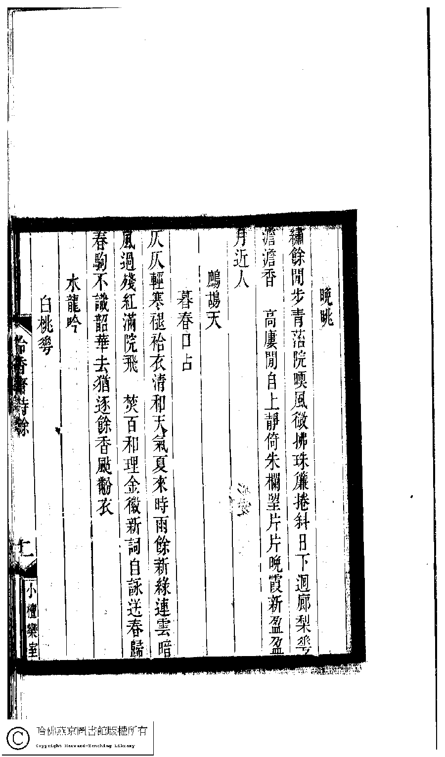 | 原書: 小檀欒室彙刻閨秀詞﹕十集一百種一百卷(清徐乃昌輯): 冷香齋詩餘﹕一卷 |