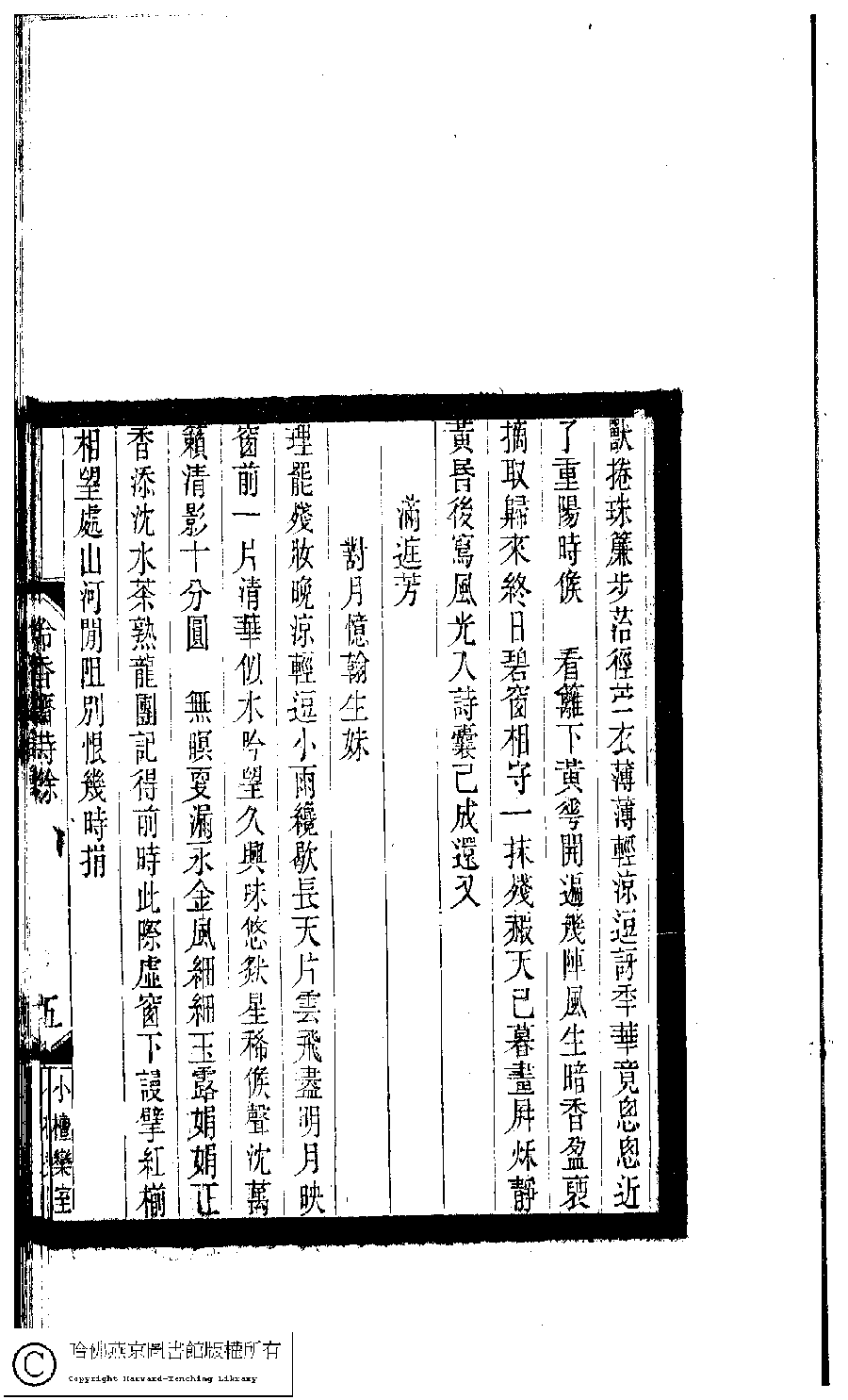 | 原書: 小檀欒室彙刻閨秀詞﹕十集一百種一百卷(清徐乃昌輯): 冷香齋詩餘﹕一卷 |
