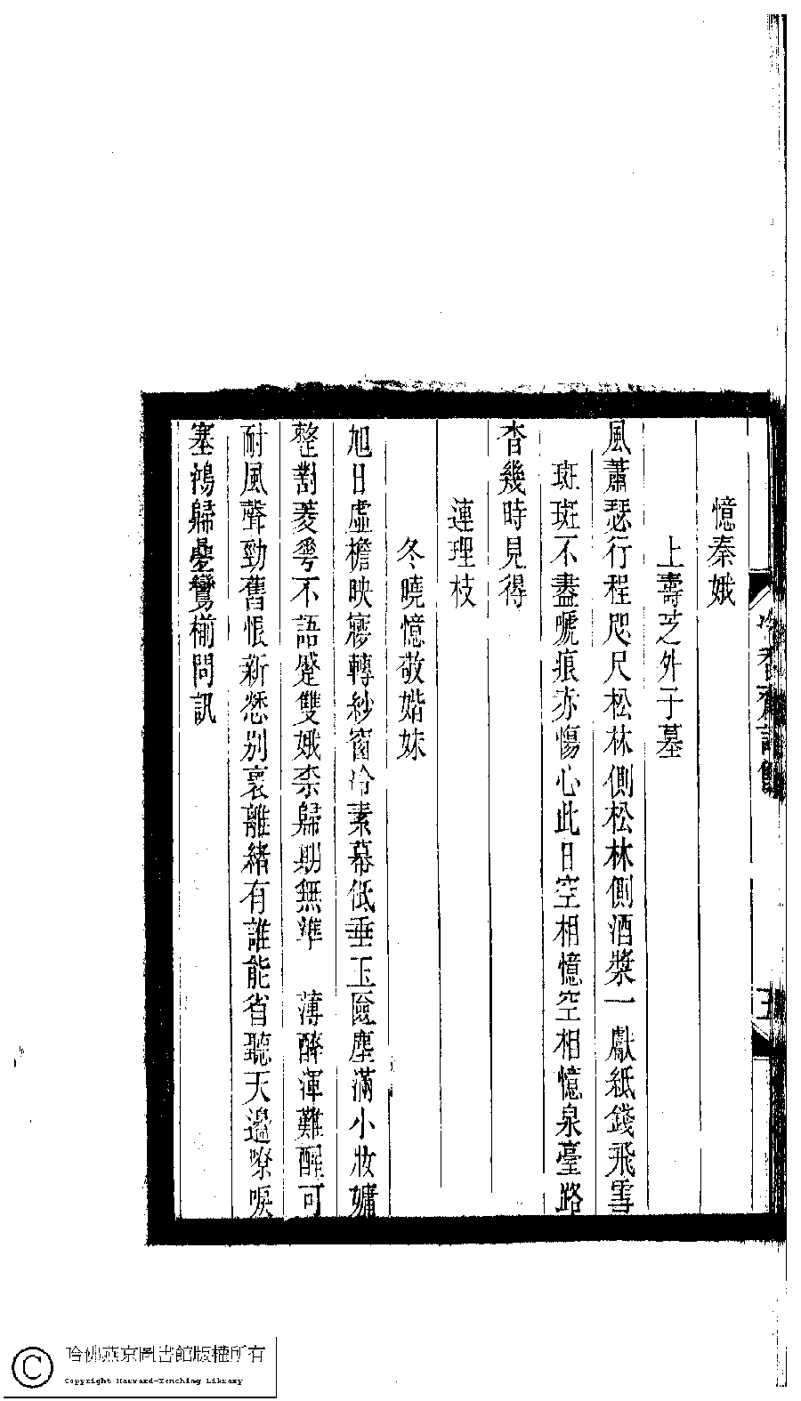 | 原書: 小檀欒室彙刻閨秀詞﹕十集一百種一百卷(清徐乃昌輯): 冷香齋詩餘﹕一卷 |