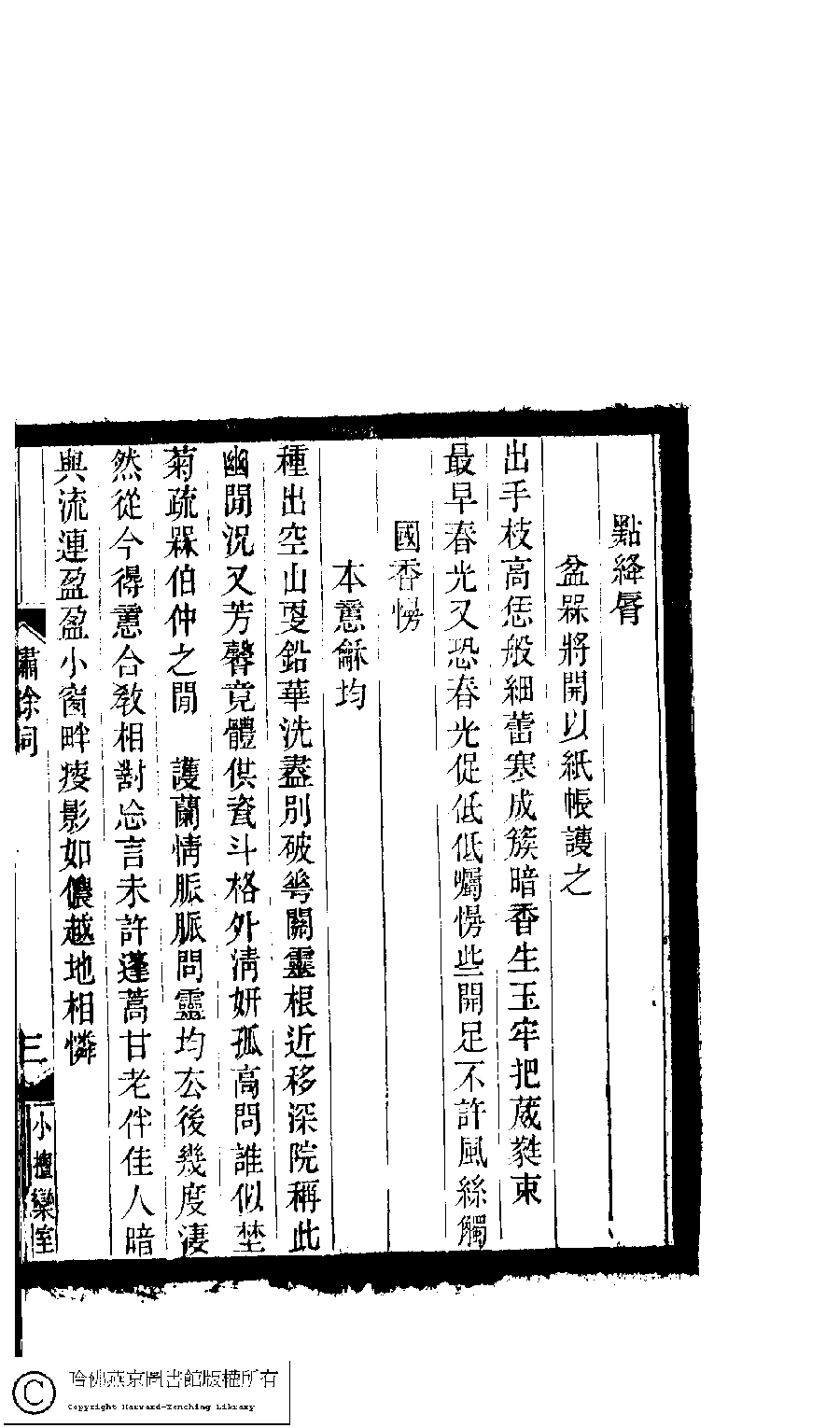 | 原書: 小檀欒室彙刻閨秀詞﹕十集一百種一百卷(清徐乃昌輯): 繡餘詞﹕一卷 |