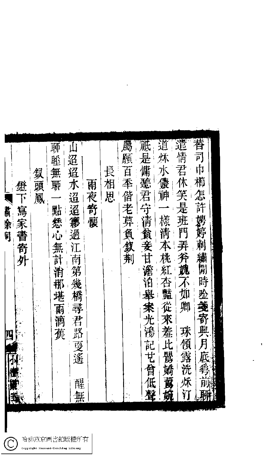 | 原書: 小檀欒室彙刻閨秀詞﹕十集一百種一百卷(清徐乃昌輯): 繡餘詞﹕一卷 |