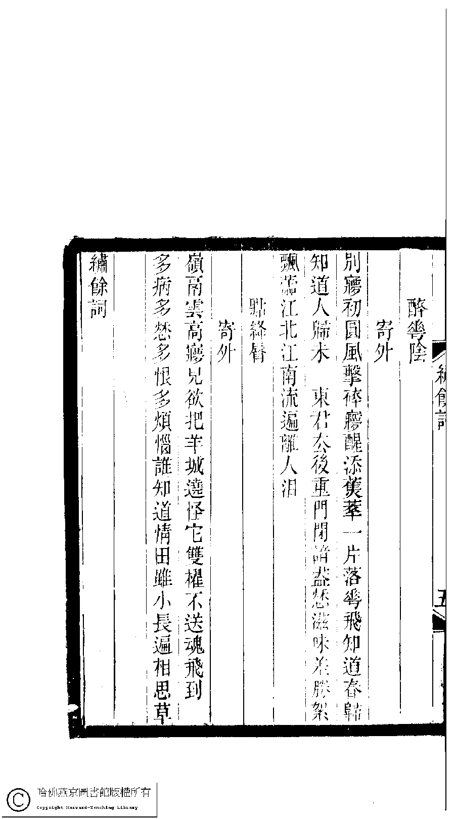 | 原書: 小檀欒室彙刻閨秀詞﹕十集一百種一百卷(清徐乃昌輯): 繡餘詞﹕一卷 |