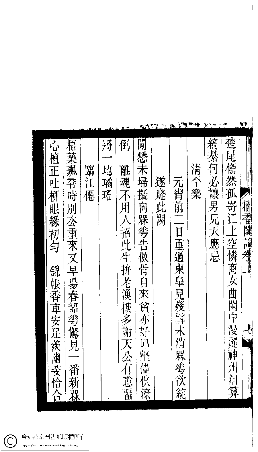 | (PRINT FRIENDLY VERSION) 小檀欒室彙刻閨秀詞﹕十集一百種一百卷(清徐乃昌輯) : 棲香閣詞﹕二卷。清光緒二十二年(1896)南陵徐氏刻本。 ![]() Page : 卷上.7b | click for larger image | 小檀欒室彙刻閨秀詞﹕十集一百種一百卷(清徐乃昌輯) : 棲香閣詞﹕二卷。清光緒二十二年(1896)南陵徐氏刻本。![]() Page : 卷上.7a | click for larger image | Back |