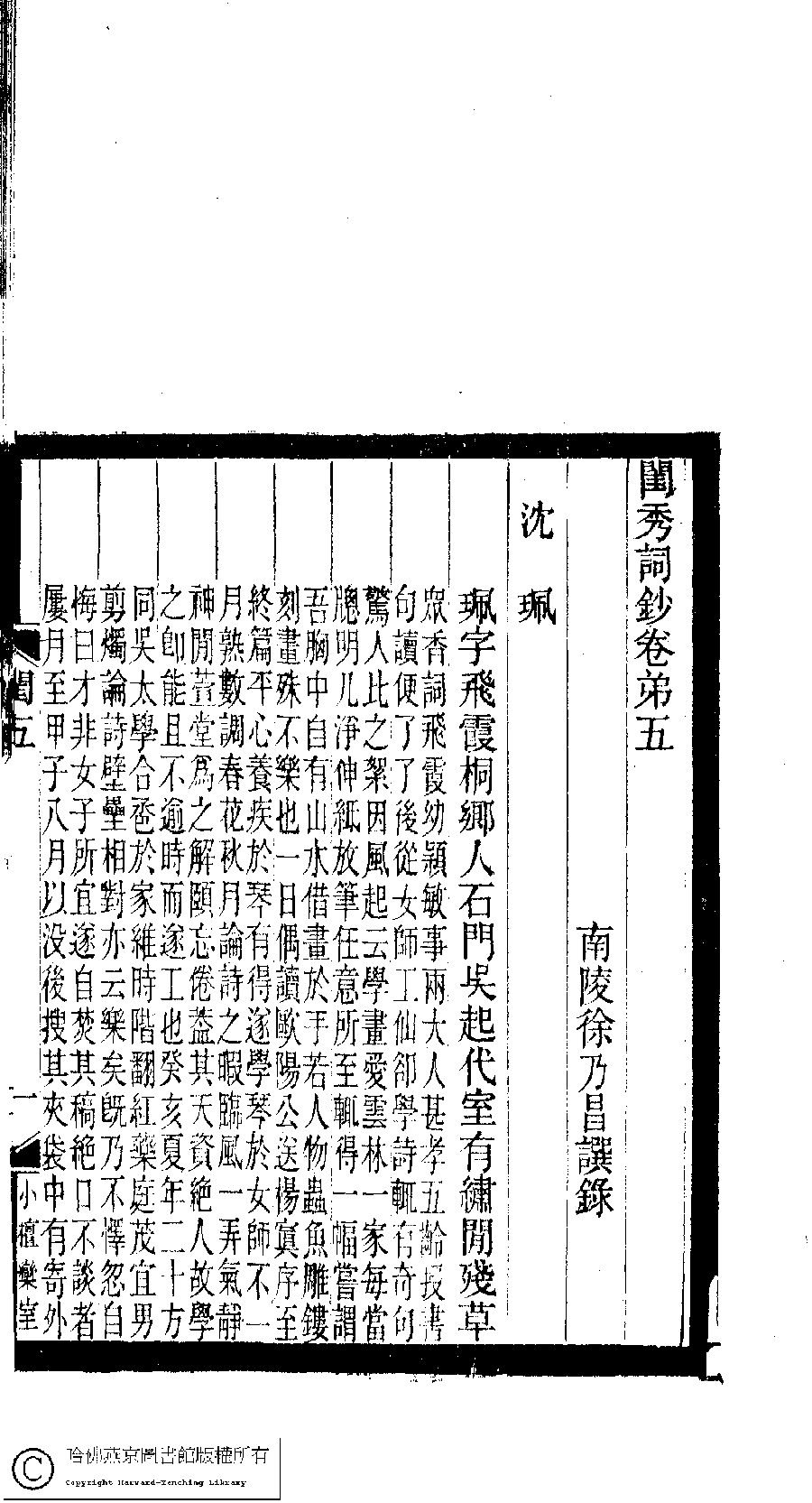 | (PRINT FRIENDLY VERSION) 閨秀詞鈔﹕十六卷(清徐乃昌輯)。清宣統元年(1909)小檀欒室刻本。 ![]() Page : 5.1b | click for larger image | 閨秀詞鈔﹕十六卷(清徐乃昌輯)。清宣統元年(1909)小檀欒室刻本。![]() Page : 5.1a | click for larger image | Back |