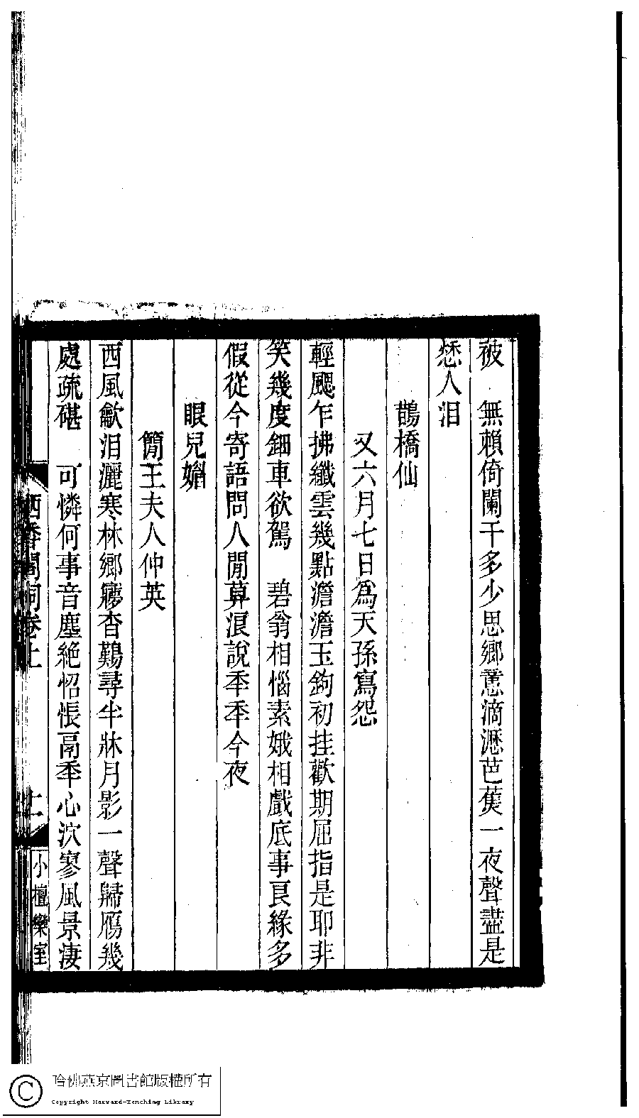 | Appears in: Xiao tan luan shi hui ke gui xiu ci: 10 ji 100 zhong 100 juan (edited by Xu Naichang, Qing dynasty): Qi xiang ge ci: 2 juan |
