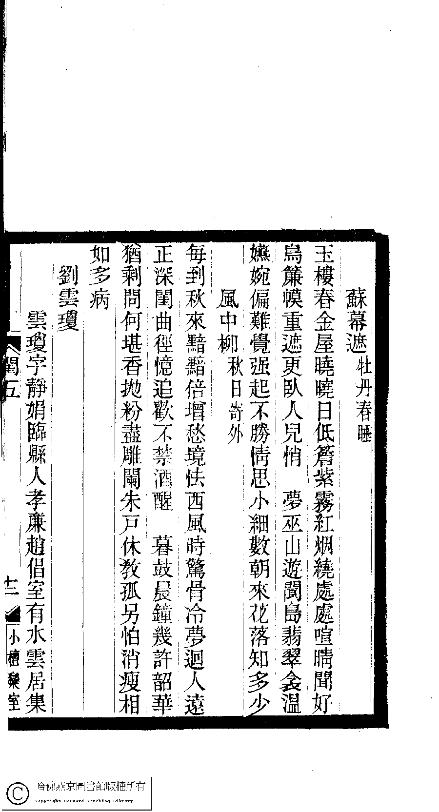 | (PRINT FRIENDLY VERSION) 閨秀詞鈔﹕十六卷(清徐乃昌輯)。清宣統元年(1909)小檀欒室刻本。 ![]() Page : 5.12a | click for larger image | Back |
