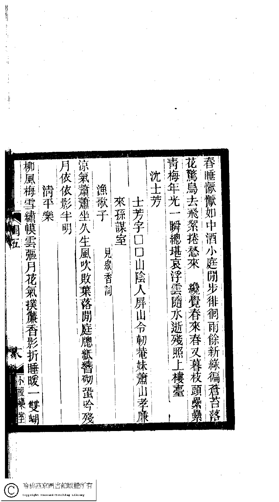 | (PRINT FRIENDLY VERSION) 閨秀詞鈔﹕十六卷(清徐乃昌輯)。清宣統元年(1909)小檀欒室刻本。 ![]() Page : 5.18a | click for larger image | Back |
