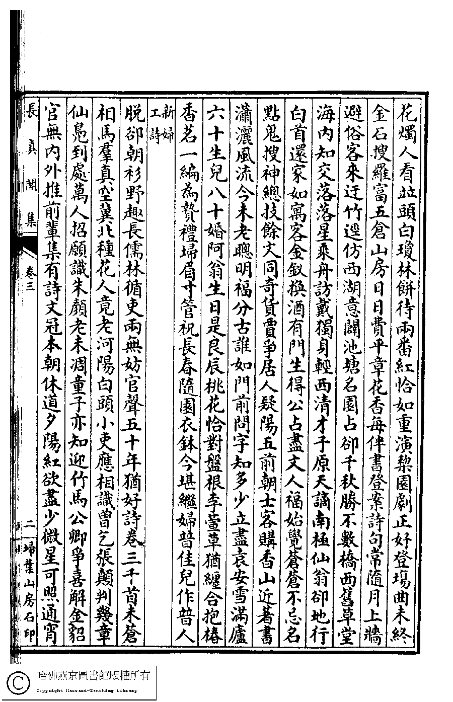 | (PRINT FRIENDLY VERSION) 長真閣集﹕七卷﹐詩餘﹕一卷(清席佩蘭撰)。民國九年(1920)掃葉山房石印本。 ![]() Page : 3.2b | click for larger image | 長真閣集﹕七卷﹐詩餘﹕一卷(清席佩蘭撰)。民國九年(1920)掃葉山房石印本。![]() Page : 3.2a | click for larger image | 長真閣集﹕七卷﹐詩餘﹕一卷(清席佩蘭撰)。民國九年(1920)掃葉山房石印本。![]() Page : 3.1b | click for larger image | Back |
