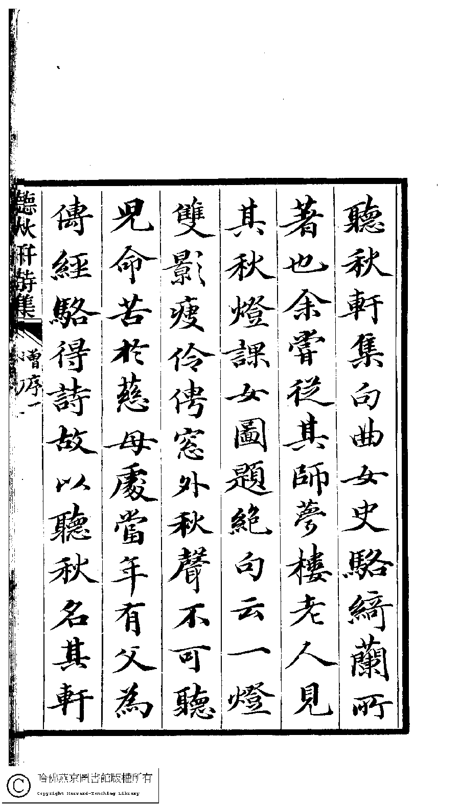聽秋軒詩集﹕三卷(清駱綺蘭撰)![]() Page : 曾序.3b | click for larger image | 聽秋軒詩集﹕三卷(清駱綺蘭撰)![]() Page : 曾序.3a | click for larger image | Back |