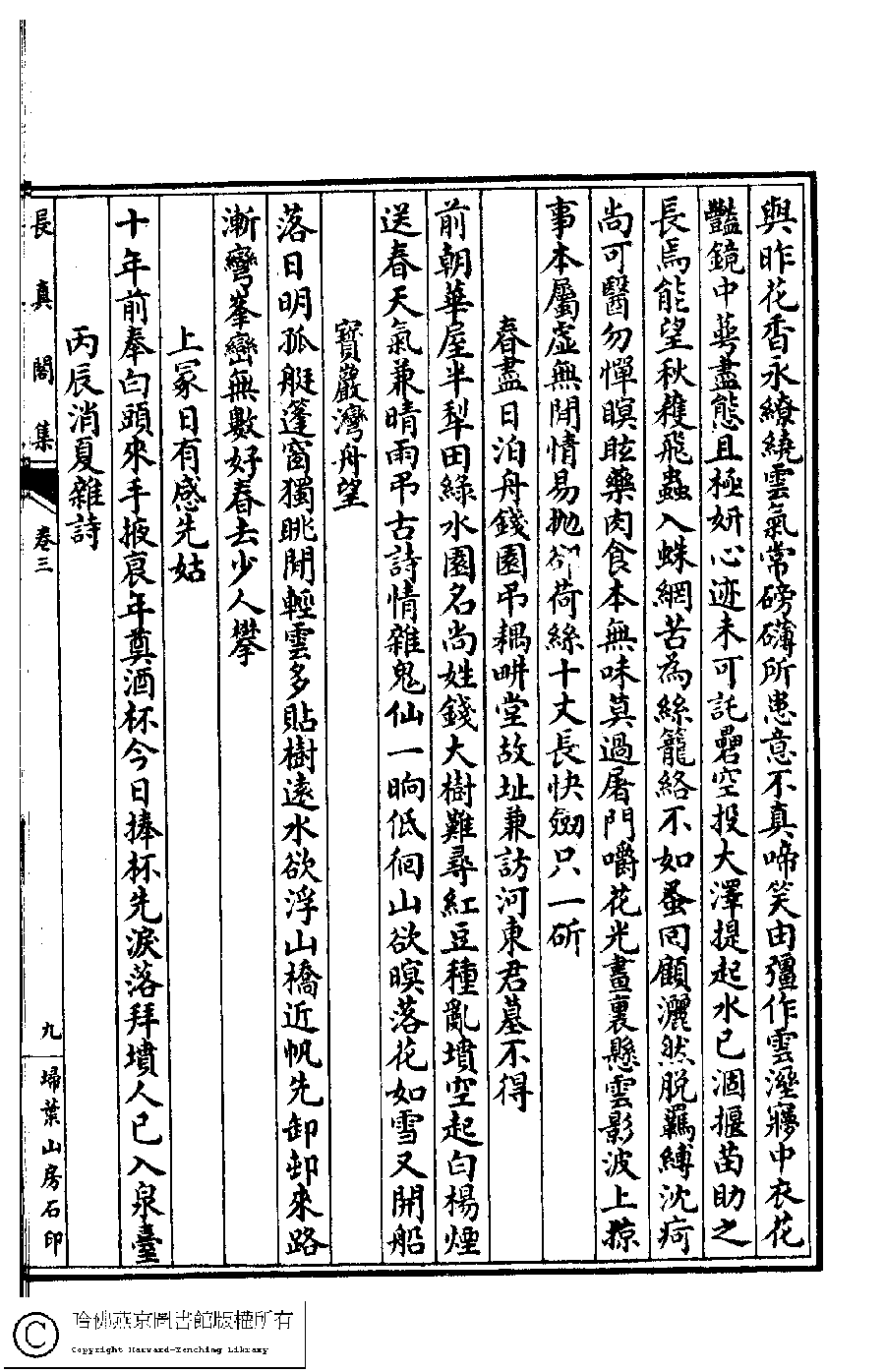 | (PRINT FRIENDLY VERSION) 長真閣集﹕七卷﹐詩餘﹕一卷(清席佩蘭撰)。民國九年(1920)掃葉山房石印本。 ![]() Page : 3.9a | click for larger image | Back |